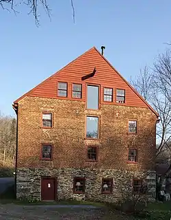 Lewis Mill Complex is a historic grist mill complex located at Jefferson, Frederick County, Maryland. The complex consists of seven standing structures, a house foundation, and the remains of an earlier millrace. It centers on an early 19th-century three-story brick mill structure with a gabled roof. The mill complex served German immigrant farmers in Middletown Valley between 1810 and the 1920s. It was rehabilitated in 1979-1980 for use as a pottery shop. Also in the complex are a stuccoed log house and log springhouse built about; a frame wagon shed and corn crib structure and frame barn dating from the late 19th century; and early 20th century cattle shelter and a frame garage.[2]