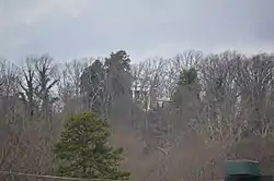 Lewis Mountain, also known as Onteora, is a historic home located near Charlottesville, Albemarle County, Virginia. It was designed in 1909, and completed in 1912. The house is a three-part plan granite dwelling, consisting of a nearly square center section flanked by one-story, flat-roofed wings in the Colonial Revival style. It features a massive wooden cornice employing a simplified version of the Roman Doric order of Vignola, a deck-on-hip roof with pedimented dormers at its base, and a portico with four Doric order columns. It also has a one-story, tetrastyle Tuscan portico that serves as a porte cochere. The steeply sloped property features a landscape designed by Warren H. Manning with a series of three terraces with tall dry-laid stone retaining walls.[3]