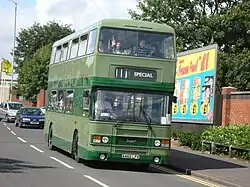 In 1968, three Atlanteans were bodied by Marshall as single deck buses for Great Yarmouth Corporation.[10] Portsmouth had 12 Atlantean chassis with single deck bodywork from Seddon Pennine, and lastly Birkenhead ordered three Northern Counties bodied single deck Atlanteans, albeit delivered to Merseyside in Birkenhead colours.