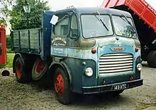 The semi-bonneted original Comet was first shown in December 1947.[1] While intended mainly for export, it was also sold in the home market. The wheelbase is 17.5 ft (5.3 m) and the gross weight 8.75 long tons (8,890 kg).[2] A coach model seating 33, sharing the same front design, appeared in 1948.[1] The cab was built by Briggs Motor Bodies and was shared with the Ford Thames ET6 (after-Ford Model TT, Ford Model AA, Ford Model BB, and Fordson 7V) and Dodge 100.[3] Ford purchased Briggs in 1953, meaning Leyland (and Dodge) were forced to develop new cabs. The original engines were a 75 hp (56 kW) diesel or a 100 hp (75 kW) petrol unit; the petrol version was rarely seen in Britain.[4]