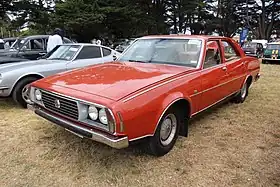 The Leyland P76 is a large car that was produced by Leyland Australia, the Australian subsidiary of British Leyland. Featuring what was described at the time as the "standard Australian wheelbase of 111 inches",[3] it was intended to provide the company with a genuine rival to large local models like the Ford Falcon, the Holden Kingswood, and the Chrysler Valiant. But, due to the first real fuel crisis and demand far exceeding the supply, Leyland rushed the assembly process with the first of the P76s to come off the assembly line, resulting in poor build quality and some reliability problems. The combination of the rushed assembly, fuel crisis and strikes at the component manufacturers' factories, resulted in the Leyland P76 being labelled a lemon, despite receiving the Wheels magazine Car of the Year in 1973. By 1974, sales of the P76 had slumped and BMC decided to end the production of the P76. Although the P76 has been labelled a lemon in Australian motoring history, it is viewed by some as an iconic Australian car and has a loyal following.