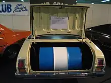 The car was designed by Giovanni Michelotti.[4] The entry-level P76 featured an enlarged 2663cc 121 bhp (83 kW)[5] version of the 6-cylinder engine from the smaller Austin Kimberley and Austin Tasman. The top-of-the-line 192 bhp (143 kW)[5] aluminium 4416 cc V8 unit was unique to the P76, and was aderivative of the ex-Buick V8 that was powering the Rover 3500 and Range Rover. Leyland Australia cited a weight advantage approaching 500 lb (230 kg) for the P76, most of which was attributed to the lighter weight of the aluminium engine block when compared to the cast-iron blocks (with bigger displacements) of the V8s from Chrysler, Holden and Ford.[3] It was hoped that the weight advantage would feed through into superior fuel economy and extended tyre life.[3] Nevertheless, the car was a full-size car in Australian terms, for which class leading boot/trunk capacity was claimed.[3]