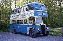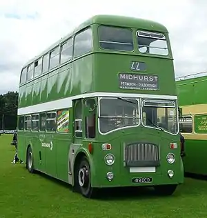 • PD1A: This version was introduced in Autumn 1946. The only difference between this and the standard PD1, was that rubber bushes sourced from Metalastic Ltd were used in place of copper bushes in the spring shackles. It seems this produced a more stable bus, notably Barton Transport had an initial tilt-test failure when they, in 1957, first re-fitted a 7 ft 6 in (2.29 m) wide Tiger PS1/1 Chassis with an 8 ft (2.4 m) wide double deck body, but fitting PD1A style spring bushes cured the problem.[19] From early 1947, the PD1A had supplanted the PD1 in production. This variant, like the PD1, sold generally across the UK. Barton, for instance, took PD1s in 1946 and PD1As in 1947, all with bespoke forward-entrance lowbridge bodies by Duple. A number of PD1As had standard Leyland outline bodies, licence-built by Walter Alexander Coachbuilders. Two of these were supplied in completely knocked down (CKD) form for the Londonderry & Lough Swilly Railway Company, who had them assembled in Londonderry. These were the first of many CKD Alexander bodies, construction of such, later, becoming a speciality. The SMT group also took Leyland-style Alexander bodies and the British Transport Commission had examples with Eastern Coach Works bodies of similar appearance to those on their standard Bristol K series double-deckers; in addition Bristol Tramways and Carriage Company had similar bodies built by its own Brislington Body Works and local private-sector coachbuilder Longwell Green Coachworks.[20]
