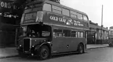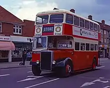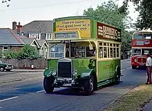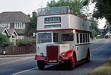 • PD1/1: This version was supplied exclusively to the City Coach Company of Brentwood, whose main service was an inter-urban run from Wood Green in East London to Southend-on-Sea in Essex, the twenty vehicles being delivered to City with bodies by Alexander, J.C. Beadle of Rochester and Charles Roberts of Wakefield, completed in 1946/7. It's not clear why these vehicles had a different suffix number, Alan Townsin says [21] "The designation PD1/1 also appeared in some records, but seems to have been based on an incorrect surmise, The City Coach vehicles in question evidently being standard PD1." although it may be that they had higher-ratio back axles, when specified elsewhere this did not give rise to a new suffix.[20]