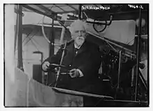 The American-born inventor Hiram Maxim experimented with flying machines at Baldwyns Park.[15][16] In 1891 he built a large hangar in the grounds where a prototype flying machine was developed. A planning application to London County Council in 1894 shows its site and the path of the rail tracks that it would run on for take-off. The rails ran out of the hangar south eastwards towards the junction of Tile Kiln Lane and Birchwood Road. The rails measured 1,800 feet in length and up 35 feet wide. The wings were added outside of the hangar, giving the craft a wingspan of 104 feet. He called these wings 'aeroplanes'. The first propelled flight of man in a machine heavier than air was witnessed at Baldwyns in 1894, though it was not classified as 'free flight' and the rails were damaged in the attempt. Work on this craft was subsequently abandoned.