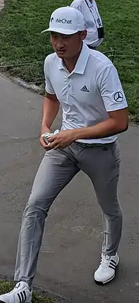 During the middle of his Web.com Tour season, Li traveled back to China and entered the inaugural Shenzhen International, an event added to the European Tour for 2015. Following a first-round 71 and a second-round 73, Li managed a third-round of seven-under-par 65, alongside two-time Masters champion Bubba Watson, who shot a 74. At that stage it was the joint lowest round of the tournament alongside Spain's Pablo Larrazábal.[3] Speaking of the experience of playing alongside Watson, Li said, "He's pretty nice guy, so I very much enjoyed playing with him. I hit a lot of greens and made a lot of birdies. I was pretty lucky also." Watson praised the youngster, saying, "He's hitting the ball really well. He's making a lot of putts. The key around a golf course is a lot of putts and he made a lot of putts today."[4] On day four of the tournament, Li shot a round of 67, but had to watch on TV to see if he would become the first Chinese player to win a European Tour event on home soil. Thailand's Kiradech Aphibarnrat, who had led for the majority of the tournament, managed to draw level at 12-under-par and force a playoff, which he won by one shot.[5]