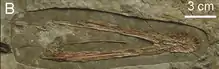 The genus is based on holotype CAR-0018, an almost complete but crushed 161 millimetres long mandible (fused lower jaws), which differs from that of all known other ctenochasmatids in its short teeth and low tooth count (eleven per side). Also a detached hyoid is present.[1]