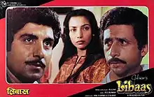 Libaas (lit.โ'clothing') is a 1988 Hindi drama film, written and directed by Gulzar. The film based on the short story Seema, published in collected stories in Raavi Paar. It is about married couples of urban India having extramarital relations and adultery. The film won critical acclaim in international film festivals, but has not been released in India to date. There had been only two public screening of Libaas in India, at the 23rd and 45th International Film Festival of India, in 1992 and 2014 respectively.[1][2]