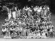 Many Unitarian Universalist congregations had a local LRY chapter, which typically had at least one meeting per month, with some groups meeting weekly. The "locals" were organized into regional federations, such as BSF (Bay Shore [MA] Federation), LAF (Long Island [NY] Area Federation), CMF (Central Midwest Federation), the Iroquois Federation (upstate New York), LSD (Lower South District), and Toak-TM (Texas, Oklahoma, Arkansas, Kansas, Tennessee, Missouri), the members of which elected officers to represent them on the continental board of directors. Many federations were also organized into intermediate "regional committees" such as MiCon (Mid-Continent Regional Committee), NERC (New England Regional Committee), MARC (Middle Atlantic Regional Council), etc.[6] Regional committees, federations and local groups hosted weekend conferences at UU churches or campgrounds, at which the members of locals got to know their fellow LRYers from other locals, or from other regions entirely. Many LRYers would travel great distances for particular conferences, and hitchhiking was a popular mode of transportation. As many as 120 kids would gather at regional conferences, which were planned and entiredly carried off by people under 20. Near the end of LRY, there was also a growing population of LRYers who had no local group, and only attended conferences. This was largely because some UU churches refused to allow LRYers to have a local at their church anymore.