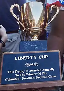 The Liberty Cup is a trophy awarded to the winner of the college football game between Columbia University and Fordham University, two National Collegiate Athletic Association (NCAA) Division I football programs in New York City. The cup was awarded annually from 2002 to 2015, but the two teams have not met since then.