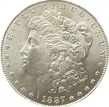 - Morgan dollar, a dollar coin of the United States depicting the goddess Liberty, minted from 1878 to 1904, then again in 1921, and issued as a commemorative in 2021