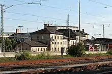 The entrance building was built in 1848 and 1849 to an 1847 design of the architect Gottfried Neureuther. It consisted of a three-story central building with four windows and on both sides it had three-storey wings. In 1859/60 the wings were extended. In 1862 the station building was completely reconstructed in a Renaissance Revival style. It was south of an additional building that was designed similar to the old central building and connected to it by a three-storey building. In 1886 a symmetrical reception building was added. The station building is now listed as a monument by the Bavarian government.