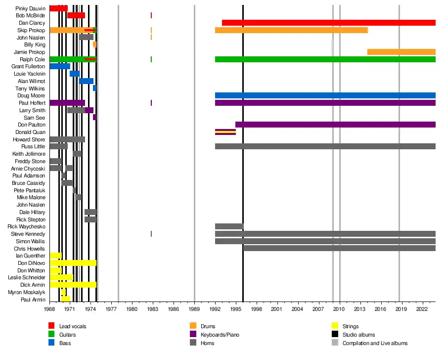 In 1992, the band reunited with a ten-member line-up which included founders Prokop, Hoffert, and Cole with McBride on vocals. McBride was dismissed several months later. He was replaced by Dan Clancy.