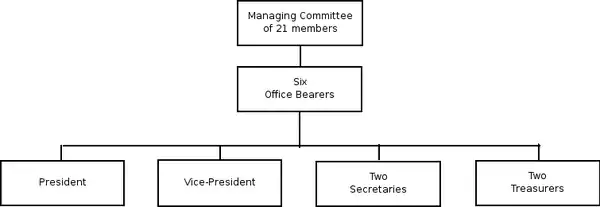 The running of the organisation is entrusted to a managing committee of twenty-one members, including the President, the Vice-President, two secretaries, and two treasurers.[11] Sanchalikas are in-charge of various branches and divisions. The office bearers of the managing committee and the sanchalikas are chosen from among the member-sisters on the basis of consensus every three years . Each branch has a committee of eleven member-sisters, again chosen by consensus.