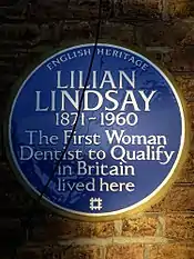 LILIAN LINDSAY 1871-1960 The First Woman Dentist to Qualify in Britain lived here- blue plaque