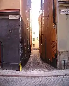 Lilla Hoparegränd is an alley in Gamla stan, the old town of Stockholm, Sweden. Passing between Skeppsbron and Österlånggatan it forms a parallel street to Ferkens Gränd, Gaffelgränd, Pelikansgränd and Johannesgränd.