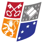 The coat of arms was developed during the founding period, the 1870s. It highlights the institution's academic and ecclesial character, the tradition in which it is rooted, and the part played by the two northern provinces in its creation. It has four sections.