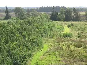 Rye was cultivated in Lille Vildmose prior to the medieval period when hemp was introduced for diversification, after ca. 1140. Agricultural production dropped and farmland in Lille Vildmose was abandoned between 1360 and 1540 due to the Black Death plague, resulting in the regeneration of woodland. After 1540, farming was intensified, the main products being rye and hemp.[6] By 1760, when Lille Vildmose belonged to the Lindenborg Estate, more than 5,000 ha (12,000 acres) were tilled for the estate's farm, Vildmosegård.[7] In the early 19th century, the reclamation of Lille Vildmose was the impetus needed to establish a peat industry.[8] The peatcutting have now been terminated completely for many reasons of which the conservation efforts is just one.