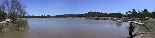 The lake covers 28 hectares with a 440 metre long dam wall. The ruins of the 1850s era Cashin's flour mill stand at the northern end of the dam wall. There are over 10 kilometres of shared trails, a community room and meeting facilities, a monster playground,[2] toilets, barbecues and a picnic area. A boat launching ramp provides for non-powered boating. There are also two areas where dogs can exercise off leash.[3]