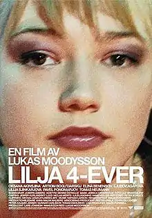 Lilya 4-ever (Swedish: Lilja 4-ever) is a 2002 crime drama film written and directed by Lukas Moodysson, which was released in Sweden on 23 August 2002.[3] It depicts the downward spiral of Lilja Michailova, played by Oksana Akinshina, a girl in the former Soviet Union whose mother abandons her to move to the United States. The story is loosely based on the true case of Danguolė Rasalaitė,[4] and examines the issue of human trafficking and sexual slavery.
