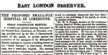 - "East London Smallpox Hospital". The Times. 15 January 1877.