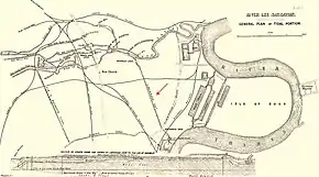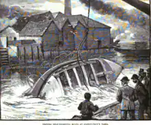 At the northern end of the Cut was a conflict with a property called Four Mills, which was in fact a group of five tidal water wheels.[16] Nathaniel Beardmore, the Lee trustees' engineer, described the conflict as it was in early Victorian times: