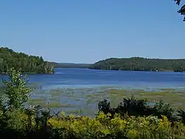 Limerick Lake is a lake in the Trent River and Lake Ontario drainage basins in the township of Limerick, Hastings County, Ontario, Canada, about 3 kilometres (1.9 mi) northwest of the community of St. Ola, 2.5 kilometres (1.6 mi) northeast of Highway 62, and 25 kilometres (16 mi) southeast of the town of Bancroft. In 1934, the building of St. Ola Dam raised the level of Big Salmon Lake by two metres. The lake was then renamed, as part of a process in Ontario to give each large lake a unique name. The original concrete dam (consisting of the dam + a sluiceway with timber logs, plus overflow weirs) was assessed in 2002 and significant cracking was found. The dam was replaced[1] in 2004 with a new concrete dam. The waterway falls under the jurisdiction of the Crowe Valley Conservation Authority[2] which has responsibility for furthering the conservation, development, and management of natural resources, but whose main activity is flood control.