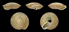 | Five views of a shell of Lindholmiola lens | |