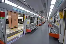 Services on the line are provided by a fleet of six-car, aluminum-bodied trains manufactured by CRRC. These trains are 118.7 m (389 ft) long and 2.8 m (9.2 ft) wide, with a capacity of up to 2062 passengers.[4]