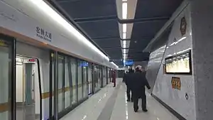 The Line 3 of Wuhan Metro (Chinese: 武汉地铁三号线) is a metro line in Wuhan. This line crosses five districts of Wuhan: Jiang'an District, Jianghan District, Qiaokou District, Hanyang District and Caidian District (Wuhan Economic-Technological Zone, WEDZ), and is the first line to cross the Han River. It started operation on December 28, 2015.[2][3]