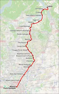 - 1 2 "Linea S7 Lecco-Molteno-Monza-Milano". www.trasporti.regione.lombardia.it (in Italian). Retrieved 28 December 2016.