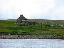 Linga is to the north east of the island of Vaila, in Vaila Sound surrounded by Mainland, Shetland on three sides. The Holm of Breibister is to the west, the Baa of Linga to the south (baa is a Shetland word for a sunken rock) and the village of Walls is in the North, on the mainland.[2] The surface area is about 65 acres (20 hectares) and there are two derelict cottages on Linga.[2] The local council granted planning permission in 2011 to an oil industry engineer develop the island[4] but by 2018 these plans had not come to fruition.[2]