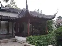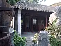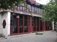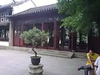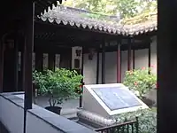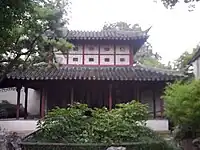 A complex and unique structure composed of a courtyard, open 3 bay hall, and covered corridor which functions as a single space. The courtyard is planted with two trees symbolizing jade (Magnolia soulangia) and gold (Osmanthus fragrans), a sign of prosperity. The entry to this space is marked by a tablet inscribed by Deputy Prime Minister Zhu Boqi which read, "Paradise on Earth".[2] |