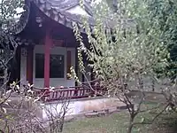 Named after a line by Zhu Shi (Song Dynasty), "The water is imbued with green, forests have become more red...".[2] The name alludes to the numerous pines added to the garden during the second phase of construction. The typical farmhouse design typology, three bay with flat eves and full gables, of the villa reinforces the idea of a rustic retreat. |