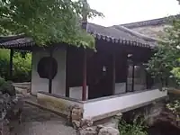 Named after a verse by Wen Zhengming, "The winding stream leads to the open place." A three bay and two-story structure with a hipped gable roofline and flying eves. |