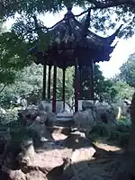 Ownership passed to Sheng Kang, a provincial treasurer of Hubei in 1873. He repaired the damaged caused to the garden by the chaos of the Taiping. After three years the reconstruction was completed in 1876, and the garden was renamed to Liu Yuan (留园).[3] The name, while homophonous to an older name, connotes leisure and thus pays tribute to the former owner as well as the resort period of the garden. It was at this time the "Auspicious Cloud Capped Peak" stone was moved to its current location.[2] The garden was inherited by Sheng Xuanhuai from his father although he abandoned the garden in 1911 and it fell into disrepair