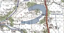 Some of the earliest record of permanent settlement in this area show that what was now Linh Đàm was first inhabited in the early 1600s, when the Linh Đàm pagoda was built. [1] The first mention of the name "Linh Đàm" on official maps was in 1882, when the Đại Nam nhất thống chí (Đại Nam Comprehensive Encyclopaedia) was published, showing the area as "Đàm Linh Đường",[2] later simply became "Linh Đàm". The villages surrounding this area was once known for producing fine rice products, such as rice vermicelli.