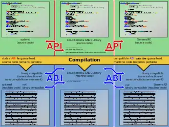 It should be able to compile the software with different compilers against the definitions specified in the ABI and achieve full binary compatibility. Compilers that are free and open-source software are e.g. GNU Compiler Collection, LLVM/Clang.