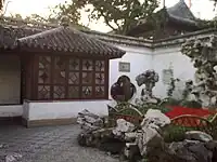 The Lion Grove Garden (simplified Chinese: 狮子林园; traditional Chinese: 獅子林園; pinyin: Shī Zǐ Lín Yuán; Suzhou Wu: Sy tsy lin yoe, Wu Chinese pronunciation: [sz̩ tsz̩ lin ɦyø]) is a garden located at 23 Yuanlin Road in Gusu District (formerly Pingjiang District), Suzhou, Jiangsu, China. The garden is famous for the large and labyrinthine grotto of taihu rocks at its center. The name of the garden is derived from the shape of these rocks, which are said to resemble lions. The garden is recognized with other classical gardens in Suzhou as a UNESCO World Heritage Site.