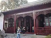 A three bay hall used by the Bei family as an ancestral temple. A tablet is inscribed with praise for Ni Zan's Picture Scroll of Lion Grove Garden. The inscription, by Gu Tinglong, reads, "elegant aroma of clouds and woods". |