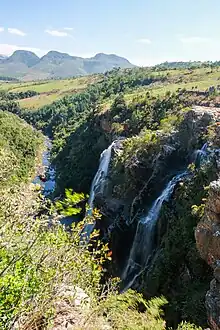 The Lisbon Falls are falls in the Lisbon Creek, a right bank tributary of the Blyde River. They are situated a short distance north of Graskop beside the R532 road, and are the highest waterfalls in Mpumalanga, South Africa.[1] The waterfalls are 94 metres (308 ft) high[2] and were named for the Lisbon Creek and the Farm Lisbon, on which the falls are located.