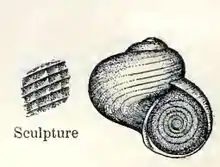 The height of the shell attains 1.5 mm, its diameter 2 mm. The shell consists of about three convex whorls forming a comparatively low, somewhat depressed spire. The entire surface below the relatively large, little raised, smooth nuclear whorl, is covered with raised, rounded, well-separated, revolving microscopic threads, most distinct on the base. The small umbilicus is scarcely more than a chink. The aperture and the operculum are typical.[2]