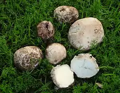 - ↑ Endoptychum agaricoides has been found to fall within Chlorophyllum, and Endoptychum was subsequently been rejected to protect Chlorophyllum. The genus is listed here because the correct placement for the remaining species is not yet known.
