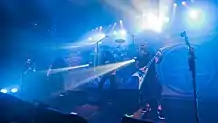 By the end of 2007, the group had enlisted Dan Nelson as its new lead vocalist and brought back Caggiano.[17] However, after recording a new album with the band, Nelson left in July 2009 and was replaced for future tour dates by Bush.[18] Belladonna returned to Anthrax the following year, making his first appearance at June's "big four" show and re-recording vocals on the album Worship Music.[19] Caggiano left the band in January 2013,[20] with Shadows Fall guitarist Jon Donais taking his place a week later.[21]
