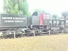 Sagniaw and Manistee Lumber Company locomotive on display in 2020