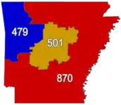 - 870, which serves eastern and southern Arkansas as well as parts of northern Arkansas, including Pine Bluff, Jonesboro, Texarkana, and the Memphis suburbs.
