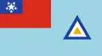1994 Naval ensign of the Myanmar Navy White field with a red canton charged with a white five-pointed star and a blue anchor in the lower fly [20]