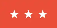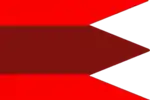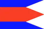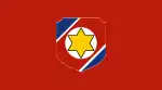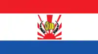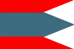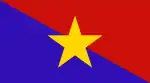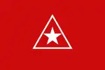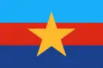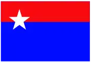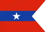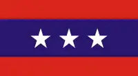 Flag of the Myanmar Armed Forces (Tatmadaw)[14][15] A horizontal triband of red, white and blue; charged with a large yellow five-pointed star at the centre [16]