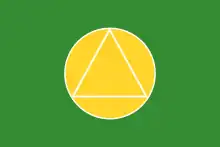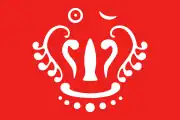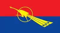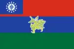 2010 Flag of Kayah State A Kinnara centred on a red-blue-green horizontal triband