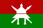 Flag of the Infantry and Light Infantry A red field charged with Bandula badge: a white ancient Burmese helmet crossed by a white sword and a white spear